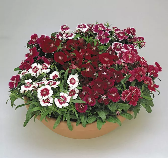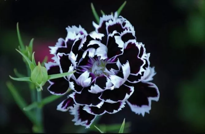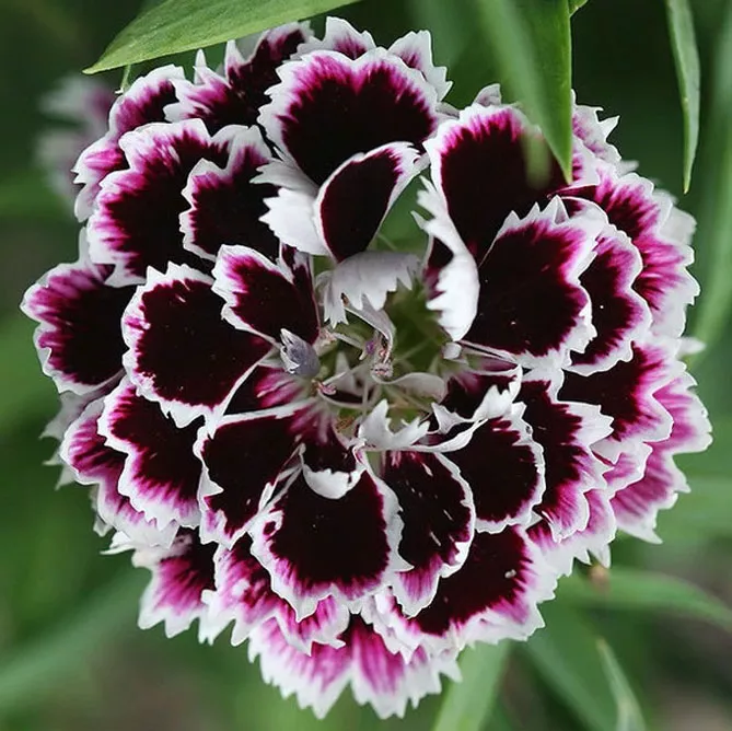 - Dianthus chinensis var. giganteus – висотою 40-60 см, з 2-3 оксамитовими квітками темно-фіолетового кольору, облямованими рожево-білою каймою.