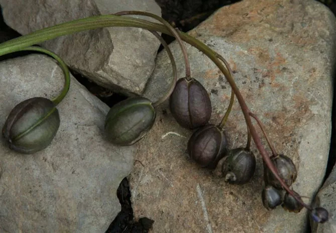 - Плоди – зелені коробочки, з часом буріють, всередині кілька дрібних, круглих, майже чорних насінин діаметром 2-3 мм.