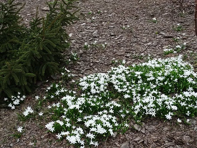 Хіонодокси чудово виглядають у саду, краще виглядають, коли їх посадили у велику групу: