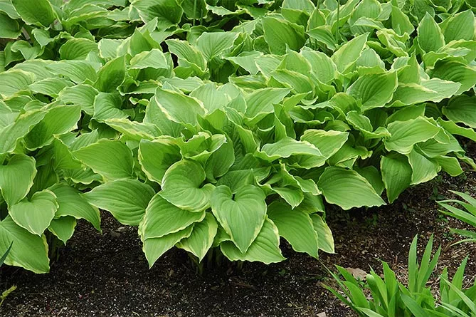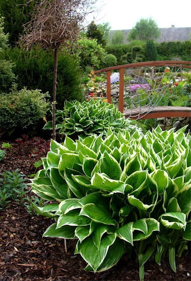 Середні та високі хости зі строкатим листям можуть виступати чудовою ґрунтопокривною рослиною. Для правильного ефекту саджають 3-5 саджанців на 1 м². Можна створити гарну аранжування, комбінуючи густі посадки хости з папоротями, травами, астильбами.
