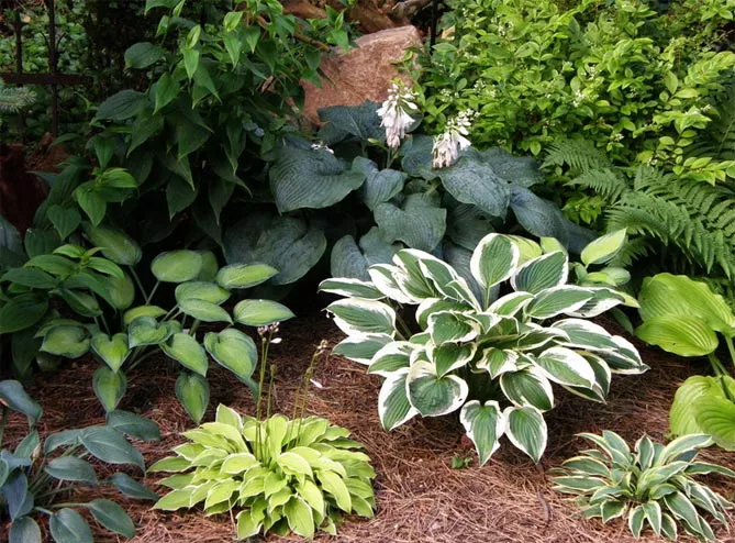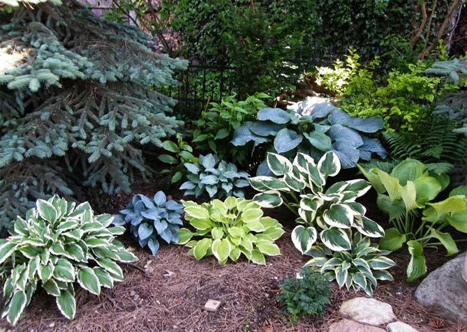 Сорти хости відрізняються за формою, розміром, забарвленням листя. Завдяки різнокольоровим сортам із яскравим або строкатим листям можна прикрасити будь-який затінений куточок саду.