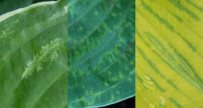 На картинках нижче представлені симптоми вірусу хости.