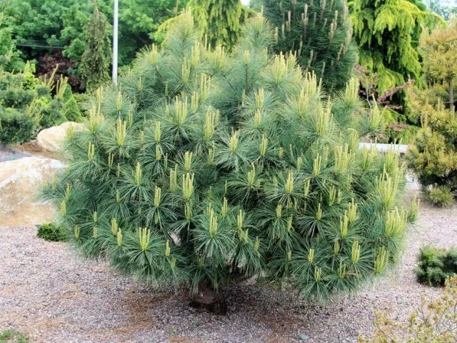 - Весняна сосна «Луї» – сорт Louie освітлює сад золотистими м'якими голками. Карликова різновидність, висотою до 10 м. Після 10 років культивування дерево виростає до 2,5 м у висоту. Любить помірно вологий садовий ґрунт зі слабкокислим pH.