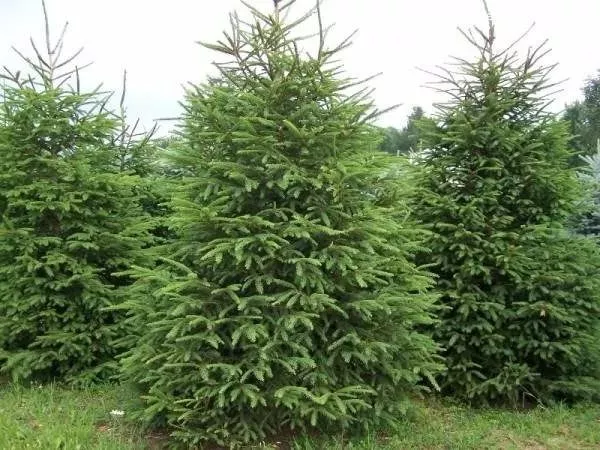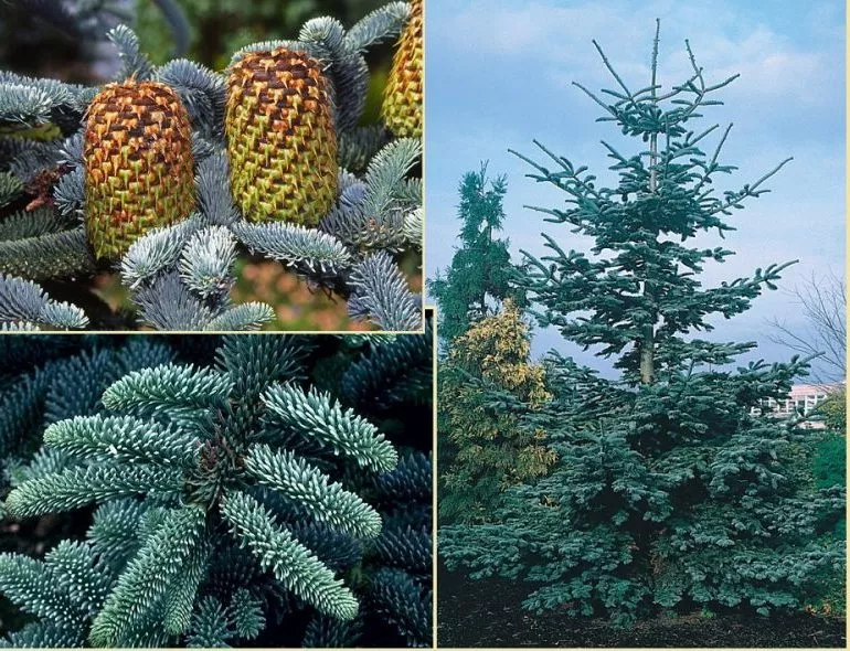 Ялиця (Abies balsamea) – дерево з загостреною короною, тонкими зеленими голками, маленькими стоячими шишками. Висота досягає 15-20 м. Популярні сорти: