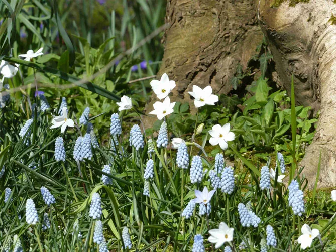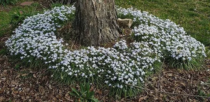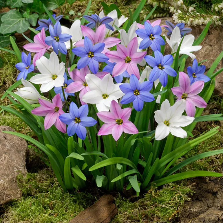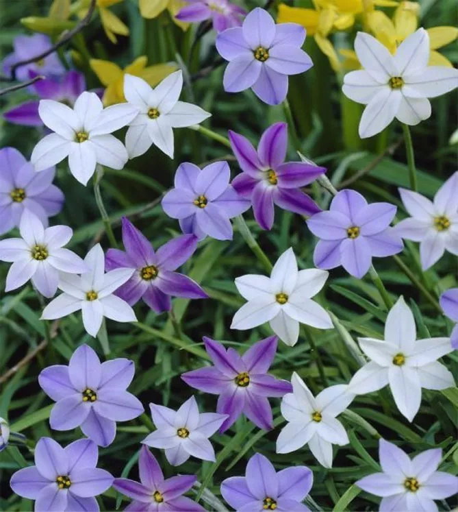 Висаджені у великій кількості іфейони утворюють квітучі килими синього, білого, рожевувато-лілового кольору разом з іншими весняними цибулинами: