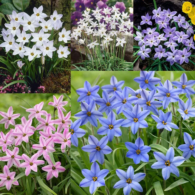 Рід Ipheion включає 10 видів, найпоширенішим з яких є Ipheion uniflorum з блідо-лавандово-блакитними квітками. Сьогодні ми відрізняємо від типових видів різні сорти з більш різноманітним забарвленням. Наприклад: