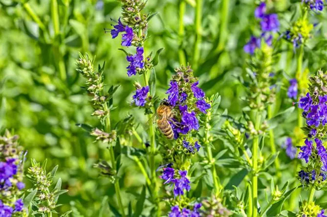 Крихітні квітки ісопу сапфірово-фіолетового забарвлення приємно контрастують з темно-зеленим листям. Рослина гарно виглядає на клумбі з багаторічниками, наприклад, у поєднанні з котячою м’ятою або вузьколистою лавандою. Його також можна використовувати як невисоку живопліт.