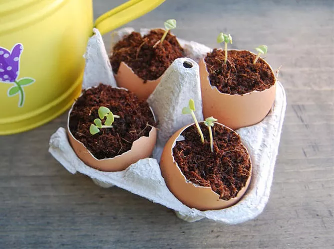 Зауваження! Особливих переваг перед баночками від йогурту чи сметани яєчна шкаралупа не має.