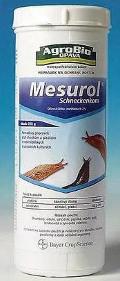 У боротьбі проти слимаків допоможуть карбаматні інсектициди. Це препарати у вигляді гранул, які висипаються у райони годівлі равликів або в їх щоденні схованки. Наприклад, мезурол (Bayer Mesurol Alimax 02 Rb) – молюскоцид, контактує з шлунком равлика у гранульованій формі. Препарат розкидають у місцях харчування шкідників – на грядках з овочами. Склад може використовуватися при низьких температурах. Він реагує досить швидко, позбавляє равликів слизу. Одноразове використання подібних молюскоцидів не ефективне, тому що яйця мають хороші шанси на виживання, тому хімічні заходи для позбавлення від слимаків необхідно повторювати кілька разів. Примітка: препарат має токсичність третього класу – шкідливий для людей, теплокровних тварин.