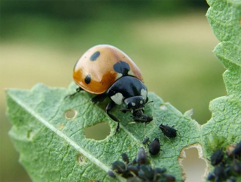 - Сонечка – можуть з'їсти до кількох тисяч шкідників протягом життя. Їх можна заманити шляхом оприскування уражених рослин цукровою водою або посадки квітучих рослин з інтенсивним запахом.