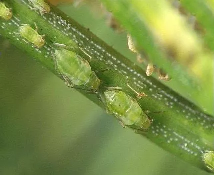 - на листках, пагонах можна побачити окремих особин або кластери в колоніях;