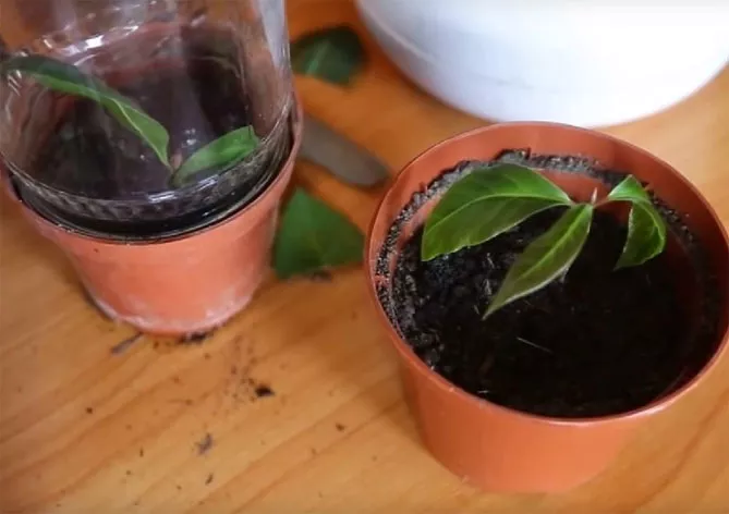 - Добре зволожене повітря також позитивно впливає на вкорінення. Тому ящик з розсадою накривають перфорованою плівкою (горщик можна накрити банкою). Плівку потрібно періодично знімати, провітрювати, щоб не утворилася пліснява.