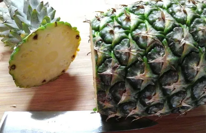 - Встановлюють ананас так, щоб опукла частина плода опинилася на імпровізованому підвищенні.