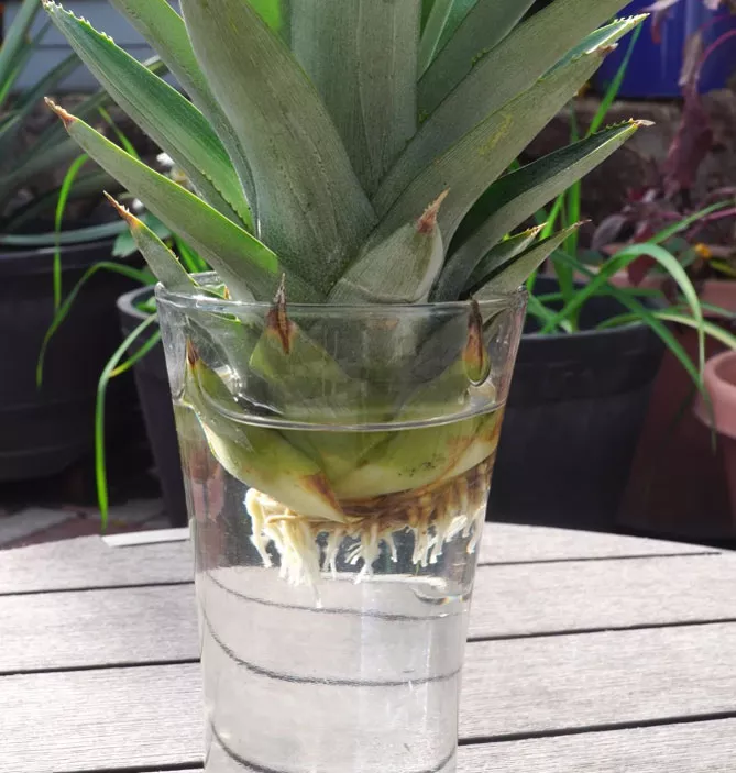 Корінці з'являються швидко. Пересаджувати ананас можна, коли їхня кількість досягне 10-15 штук, а довжина – мінімум 2 см.