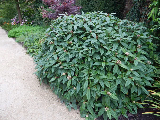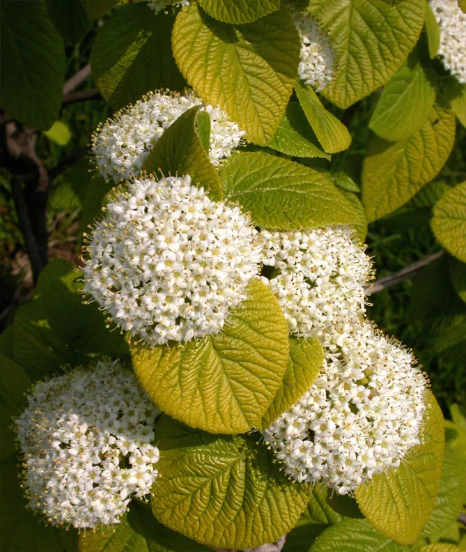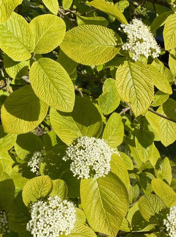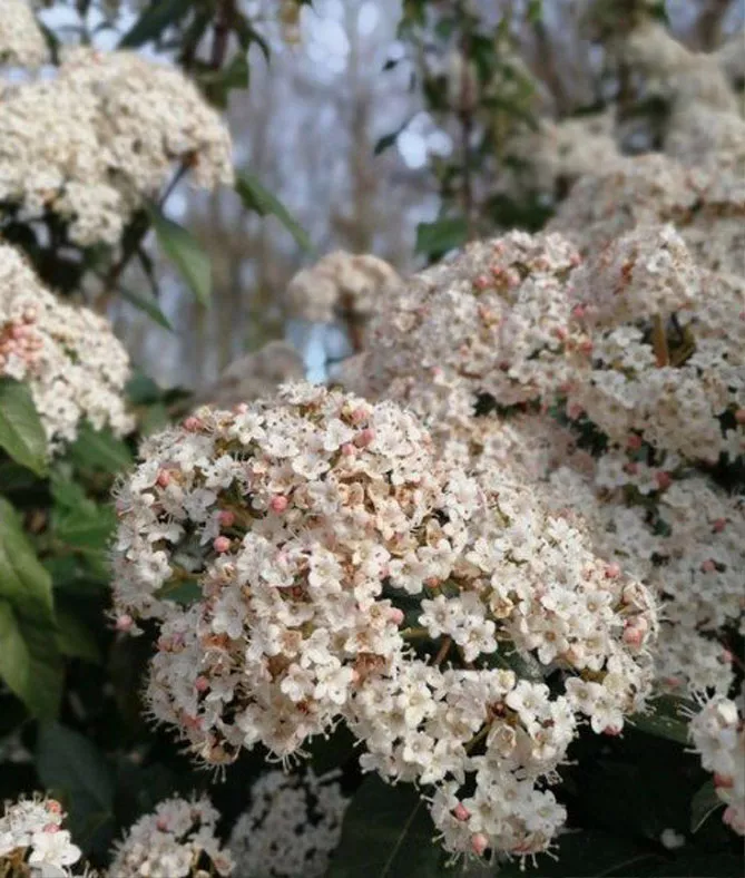 Що ж стосується вічнозелених видів, то вони дозволяють створити масив, який залишається зеленим навіть посеред зими! Наприклад, Viburnum tinus, Viburnum davidii, Viburnum x burkwoodii та Viburnum rhytidophyllum. Також дуже цікава чудова золотисто-жовта листва калини лантанової «Aureum»!