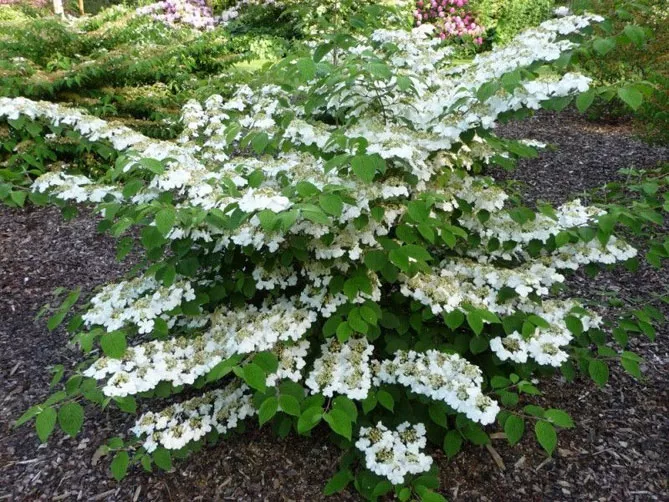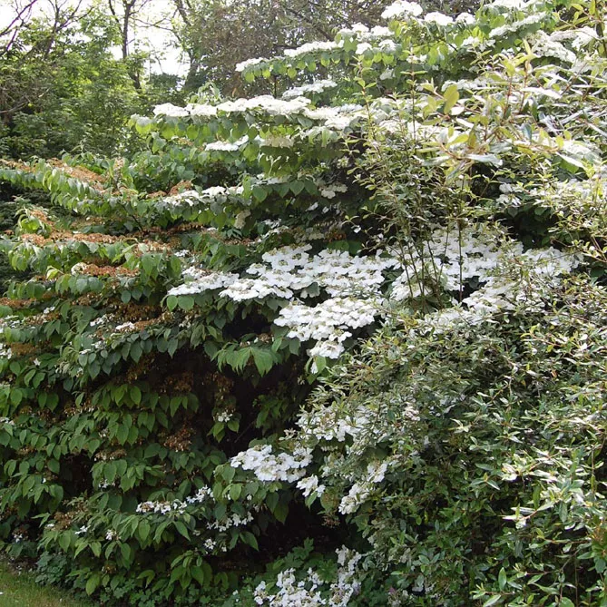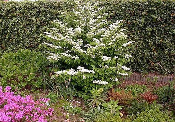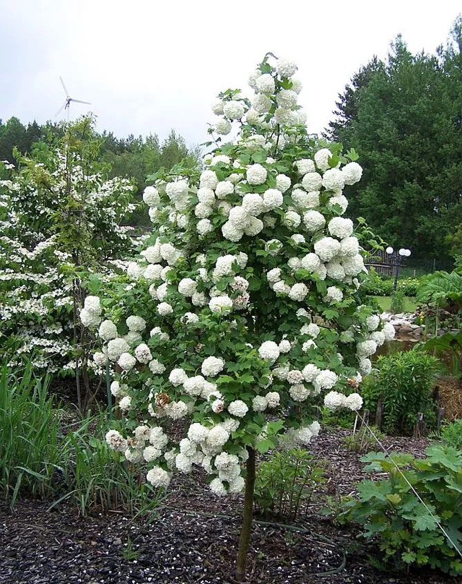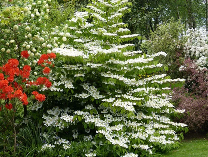 Якщо ви виберете Viburnum plicatum або Viburnum opulus ‘Roseum’, садити їх ізольовано. Їхня виняткова архітектура та цвітіння будуть ще більше підкреслені! Можна посадити у їх підніжжя: