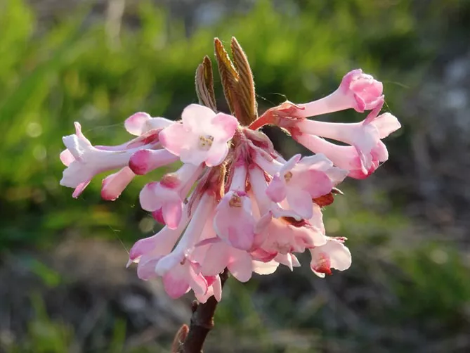Сорт калини боднантенської «Даун» (Viburnum bodnantense Dawn) цвіте ранньою весною. Висота – 2,5 м. Голі гілочки навесні вкриваються димчастими, рожевими квітами. Кущ виглядає дуже ефектно, так як в цей час в саду не вистачає квітів інших рослин! Потім з'являється листя, спочатку бронзове або мідне в молодому віці, потім темно-зелене. Восени листя набуває красивих червоних відтінків.