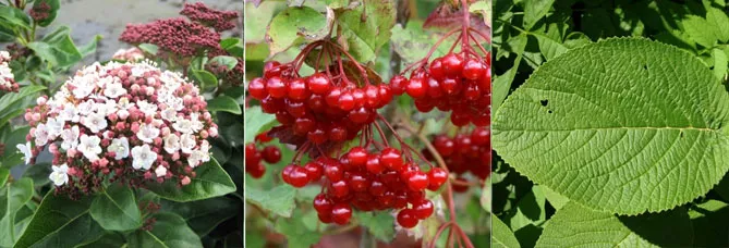 У калини прості листя, часто з помітними жилками, краї іноді зубчасті. Калина V. opulus чудова своїми чудовими трилопатевими листками! Вид V. rhytidophyllum примітний своїм зморшкуватим, рельєфним виглядом через надзвичайно виражені жилки листкових пластин!
