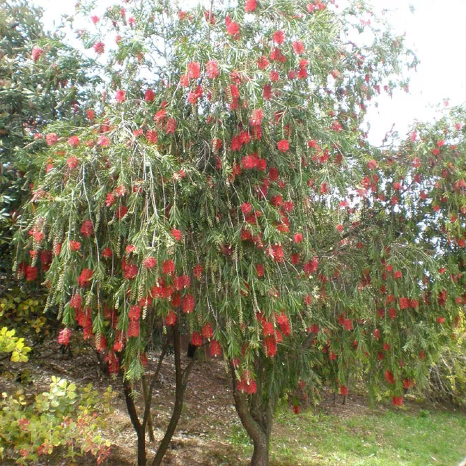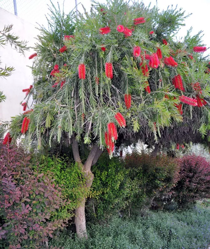 - Калістемон плетений (Callistemon viminalis) – з красивим силуетом фонтану.