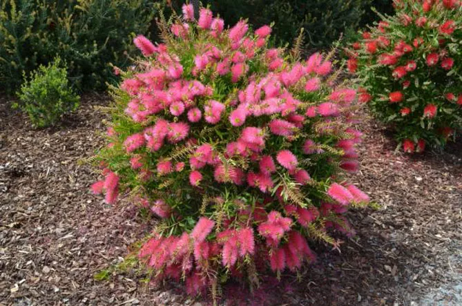 Калістемон гібридний Callistemon x laevis – утворює чарівний кущ заввишки 1,8 м з розлогим габітусом, здатний цвісти кілька разів протягом сезону, якщо отримує достатньо вологи.