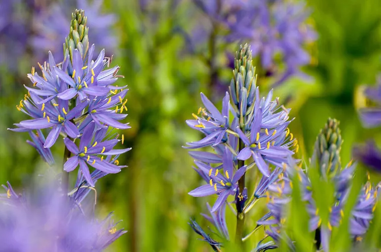Один із найпривабливіших видів – Камасія їстівна чи квамаш (лат. Camassia quamash). Період цвітіння рослини: травень-червень. Висота з квітконосом – 60 см. Цей «індійський гіацинт» швидко колонізує простір і розпускає витончені колоски яскраво-блакитних квітів. Утворює чудовий квітучий луг.