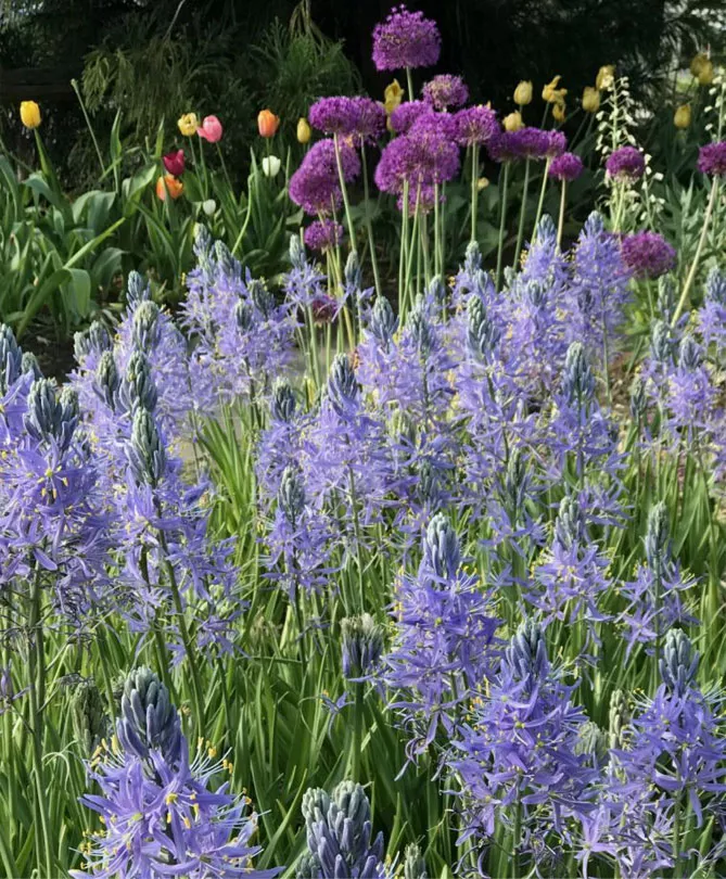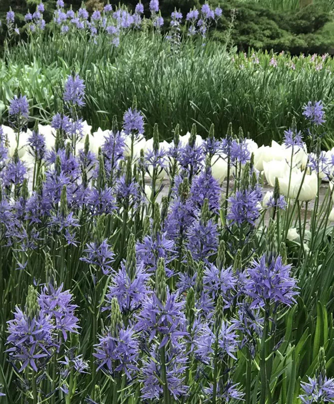 - На клумбах садіть камасії поряд з іншими весняними цибулинними квітами: тюльпанами, декоративною часником, рябчиками, нарцисами. Можливості безмежні і можуть змінюватися щороку відповідно до бажань.