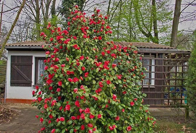 Камелія – дуже декоративна рослина, яка відмінно виглядає як фон для газонів і елемент живої огорожі, хоча з її чутливістю до зимових умов слід рахувати.