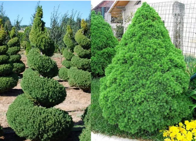 Деякі різновиди конусоподібної форми зазвичай отримують за допомогою щеплення, що не тільки гарантує збереження бажаних характеристик даного екземпляра, але також дозволяє створювати привабливі форми рослин.