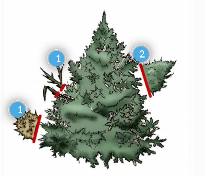 Малюнок. Як обрізати ялину коніка.