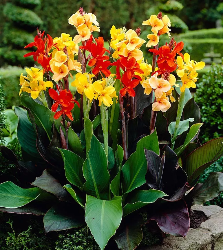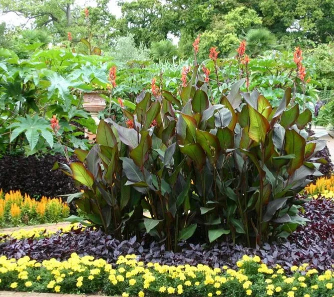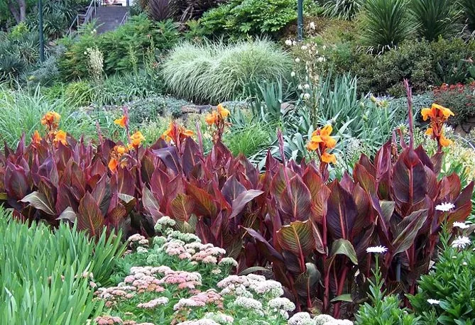 Канна садова (Canna x generalis) відома, як просто канна, характеризується яйцеподібно-ланцетними листками, розміщеними на жорстких, порожнистих стеблах, що закінчуються суцвіттям. Це надзвичайно оригінальна багаторічна рослина – що вирощується заради декоративних і екзотичних листків і яскравих квіток, що прикрашають сад з липня до перших заморозків.