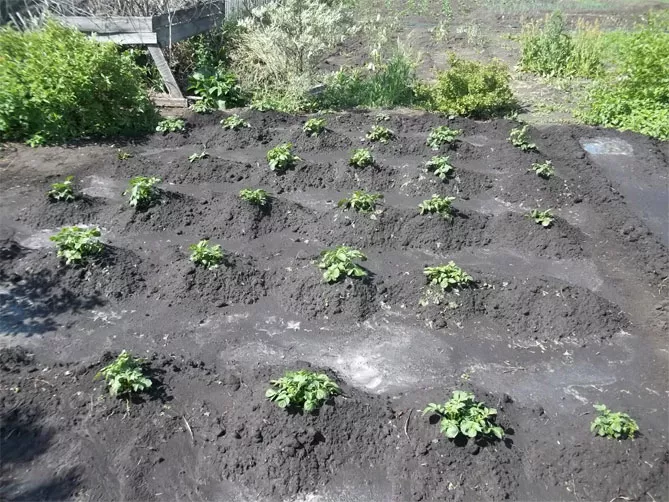 ЗАУВАЖЕННЯ! При посадці картоплі Маніфест у лунки, горбок перед викопуванням повинен досягати висоти близько 20 см. У траншеї або на високі гряди – до 30-35 см.