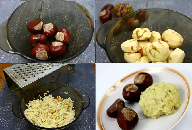 Наші бабусі добре знають цю ідею. У часи, коли важко було знайти паперовий клей, вони робили його самостійно. Для цього вони використовували картопляне борошно або каштани! Щоб приготувати таке органічне сполучна речовина, потрібно очистити плоди від коричневих оболонок, натерти їх на дрібній тертці в порошок і змішати з водою.