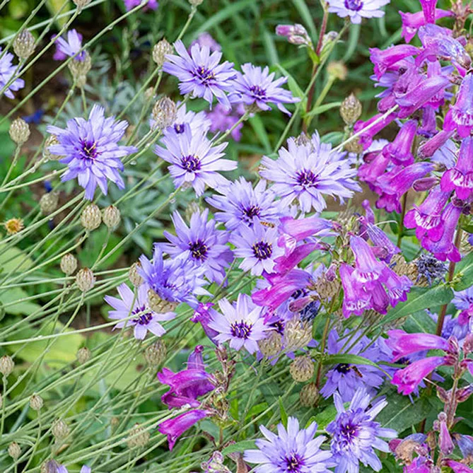 Сорт «Амор Блю» (C. caerulea Amor Blue) обов'язково приверне увагу гіпнотичним блакитним квітком, оточеним яскраво-синіми пелюстками, що спираються на сріблясті приквітки. Період цвітіння: серпень-жовтень. Висота – 50-60 см.