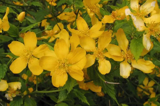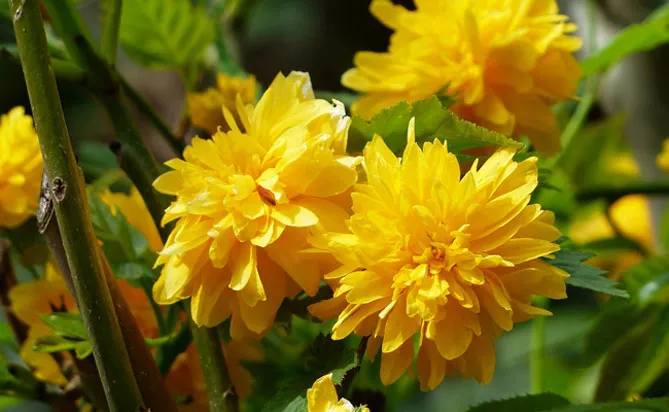 Сонячне цвітіння керії можна супроводжувати одночасним цвітінням наступних рослин: