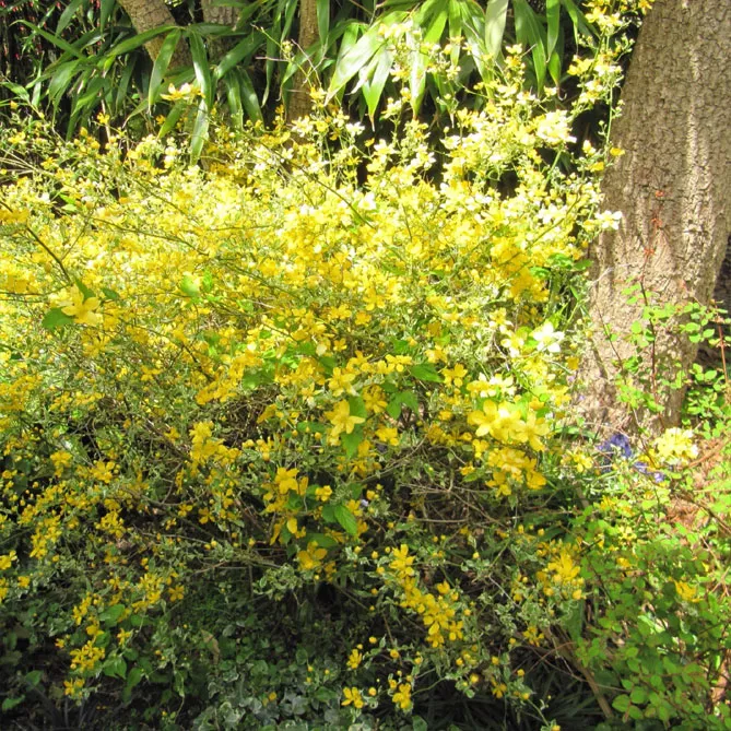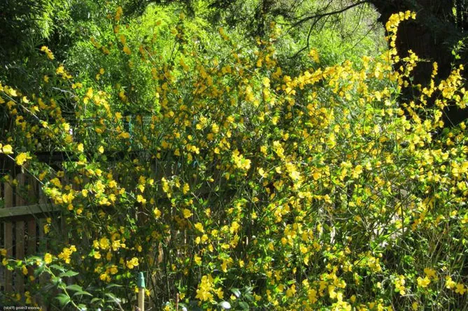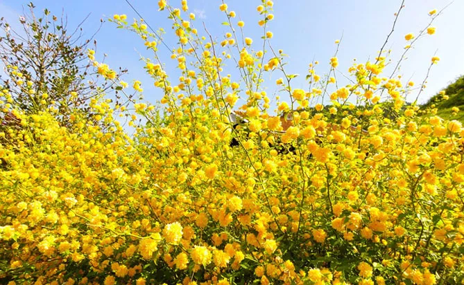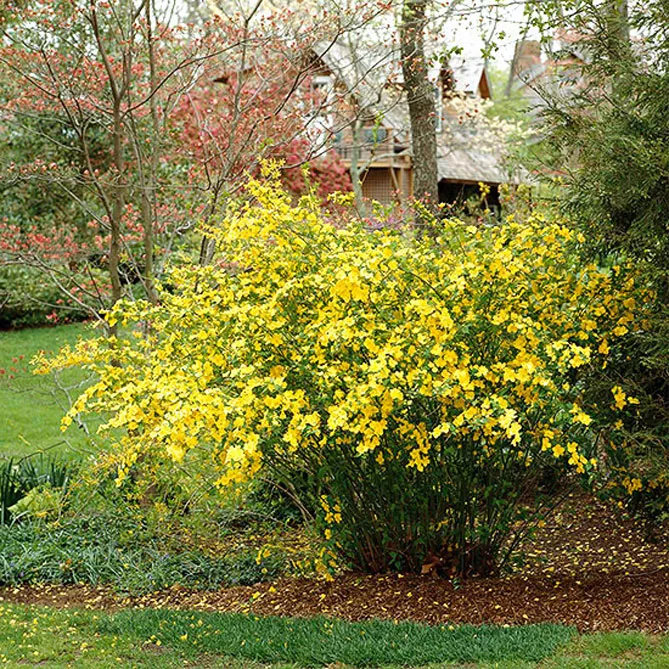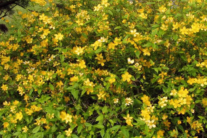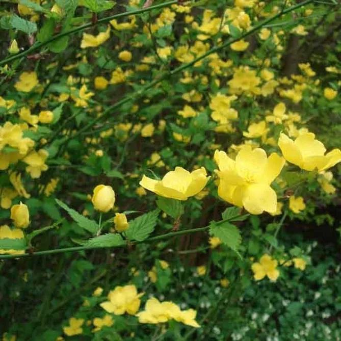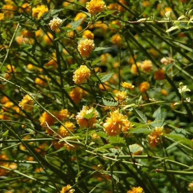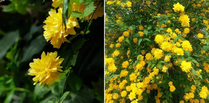 Гілки керії, всипані дрібними золотисто-жовтими квітками, послужать фоном для різних рослин: