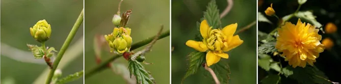 Фото. Розпускання квітки керії сорту «Пленіфлора»