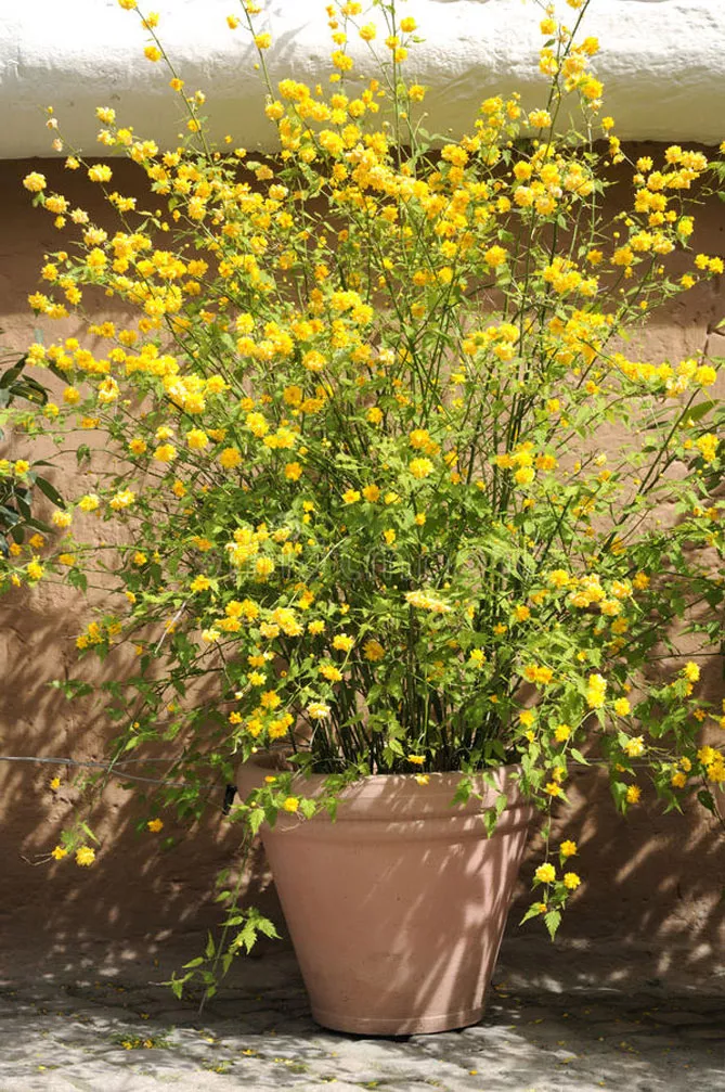 Керію японську можна вирощувати в горщиках у досить великій ємності (діаметром мінімум 90 см). Субстрат повинен бути добре дренованим, щоб уникнути застою вологи біля основи коренів. Пересаджуйте рослину кожні 2-3 роки. При посадці в горщик насипте на його дно хороший шар дренажу (гравій, керамзит) і заповніть горщик родючим грунтом. Багато поливайте в період вегетації, потім – в міру висихання ґрунту.