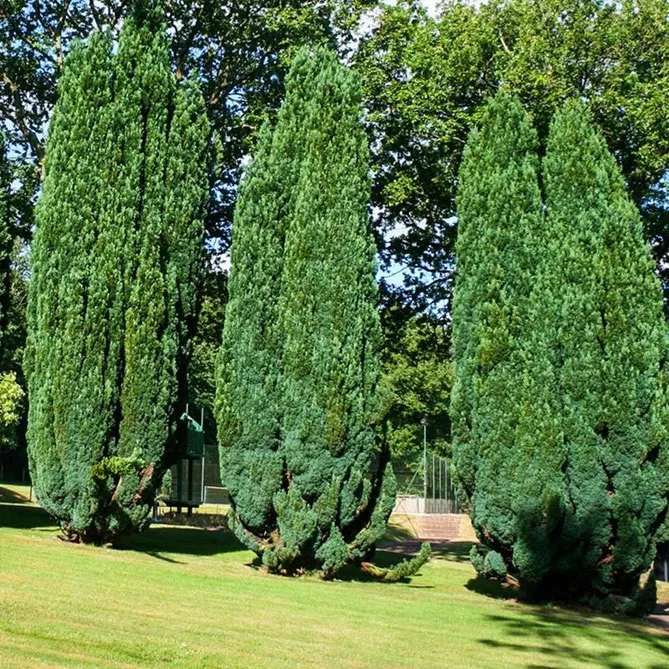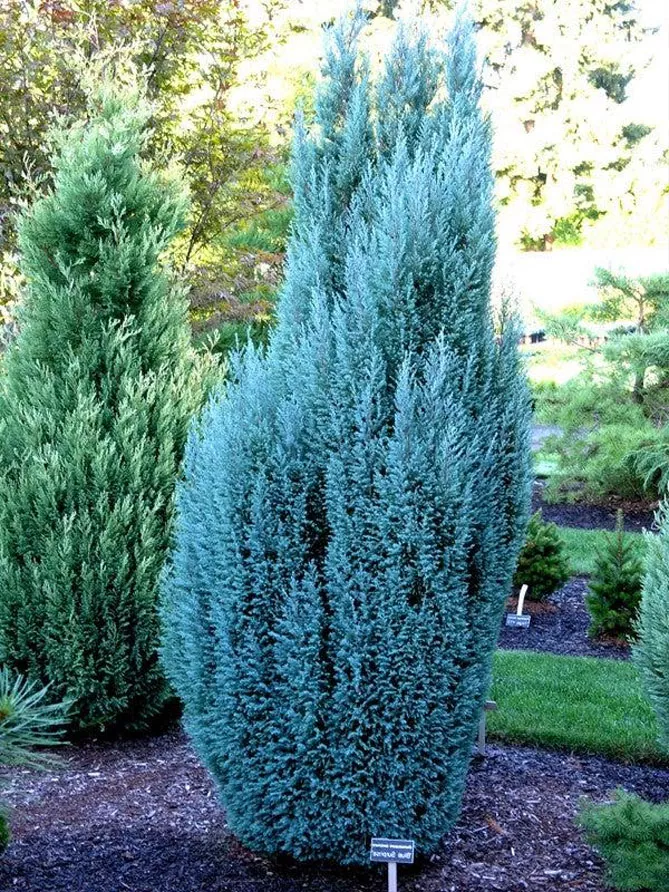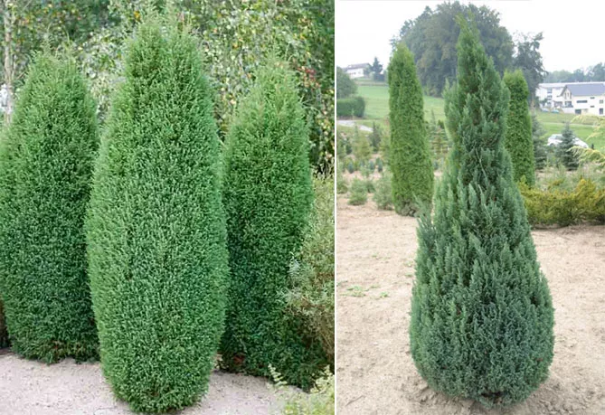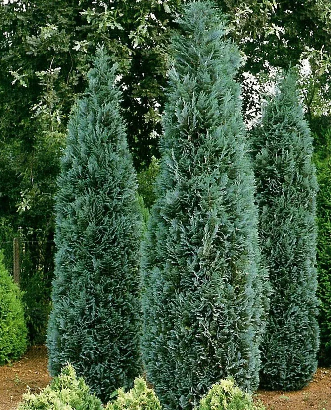 Сріблястий колір сорту «Колумнарис» Columnaris буде добре виглядати в барвистих композиціях з іншими хвойними деревами, наприклад, в компанії з іншими кипарисами: