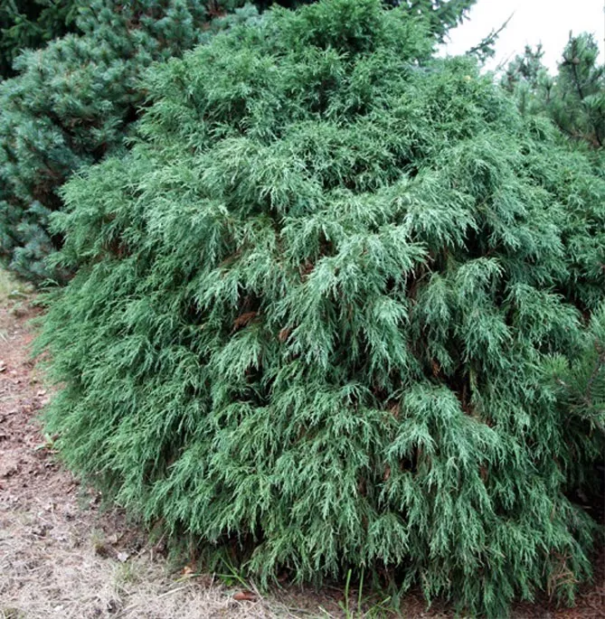 Карликовий сорт «Гном» (Gnome) дуже повільно росте. Кущ з кулястою або кулясто-конічною формою, через 10 років досягає 0,3-0,5 м. Хвоя зеленувато-блакитна. Всі гілочки свисають, навалюючись одна над іншою. Можна вирощувати в саду та контейнерах, як низький живий паркан. Відмінно переносить обрізку. Може замерзати в наших кліматичних умовах.