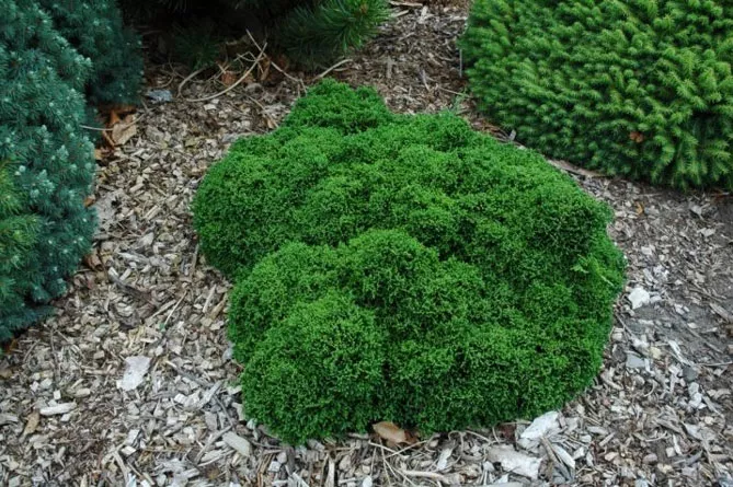 Повільно ростучий сорт «Мініма Глаука» (Minima Glauca) – карликовий, з округлою формою, виростає через 10 років до 0,5-1 м. Особливо рекомендується для створення композицій.