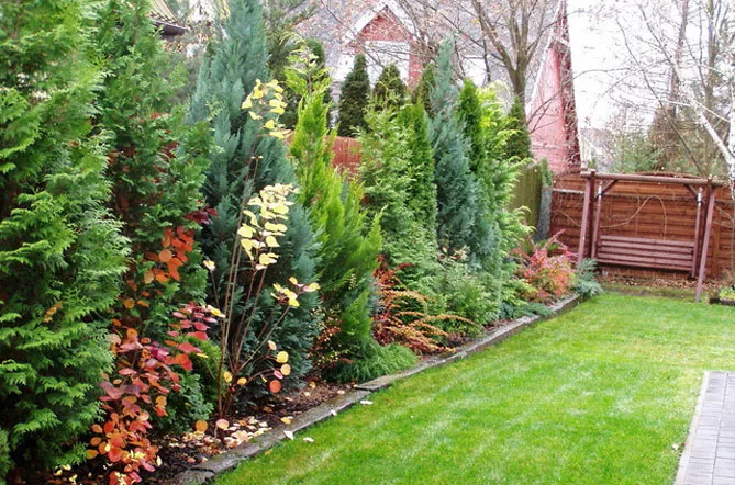 - створить прекрасний осінній дует з барбарисом «Еректа» і «Грін карпет», ефектно будуть виглядати ці чагарники, що забарвлюються в помаранчевий колір на тлі хвої кипарисовика.