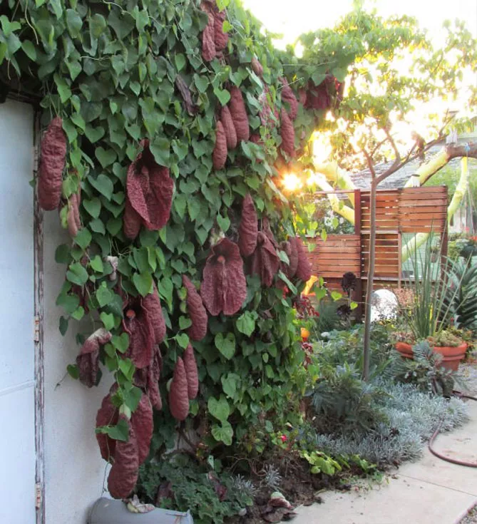 Ліану цінують за здатність швидко покривати стіни, перголи або будь-яку доступну їй опору. Вона дивує своєю ефектною пишною листкою рішучо екзотичного вигляду, яка восени набуває чудових відтінків. Ця буйна листва ховає влітку дивовижні квіти сифоноподібної форми красивого темно-фіолетового кольору з кремовими цятками.