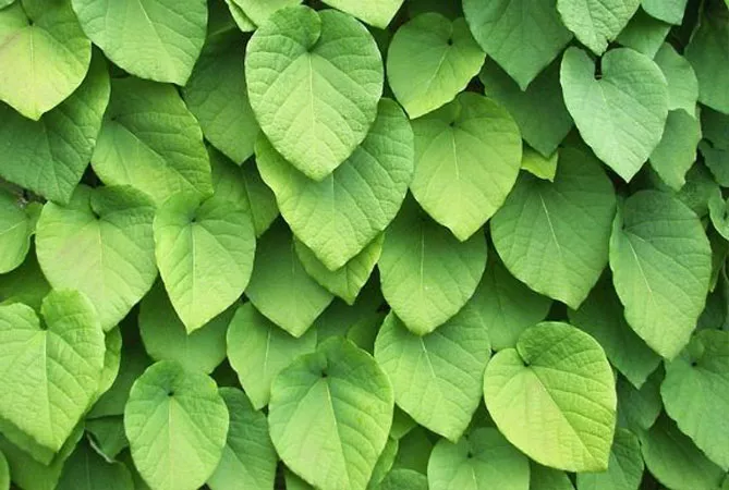 Листки 10-15 см завширшки, серцеподібні, звужені до кінця, сильно ребристі, з хвилястими краями, чистого зеленого кольору, спочатку опушені, потім блискучі, мають сизий і матовий відтінок. Протягом сезону, від розпускання бруньок до листопаду, листка змінюється. Восени перед опаданням вона набуває розкішних яскравих помаранчевих, червоних, пурпурних відтінків.