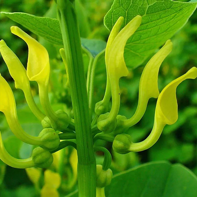 Aristolochia clematitis з маленькими світло-жовтими квітками добре поєднується з соняшником, бузиною.
