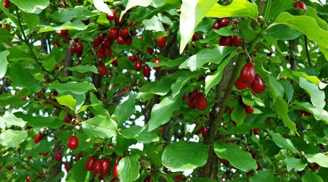 Кизил, що формує кущ або невелике деревце, популярний завдяки декоративності рослини та цілющим властивостям плодів.