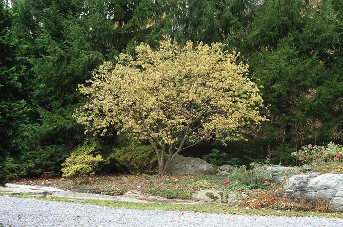 Залежно від сорту та регіону осінній колір листя буває оранжевим або блідо-рожевим.