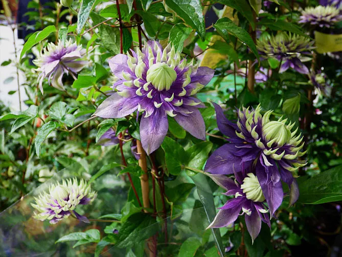 Клематиси сорту «Тайга», виведені зовсім недавно в Японії, є твором селекційного мистецтва. Сорт зайняв призове місце на виставці «Квіти Експо 2017» у Києві, а також одностайно нагороджений на міжнародній виставці в Голландії «Плантаріум 2016» у категорії «Садові та балконні рослини». Ця рослина скромного розміру дійсно унікальна завдяки великим, махровим квіткам, що трохи нагадують своєю незвичайною архітектурою квіти кактусових георгин.