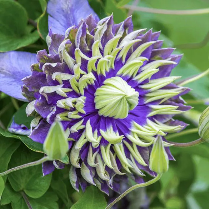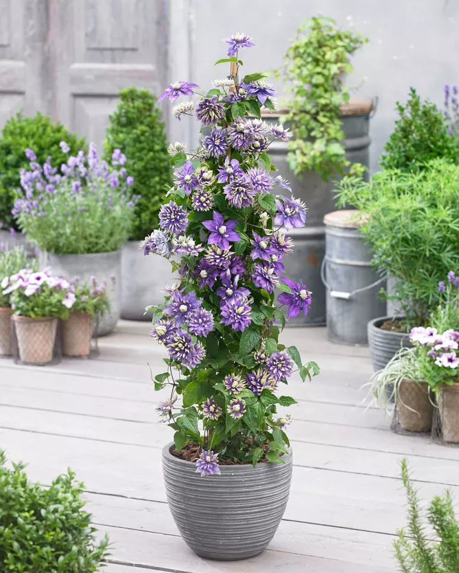 Ця чудова виюча рослина з великими махровими квітами зі строкатим забарвленням, рясним цвітінням, прикрашає стіни, перголи, балкони та тераси. Скористайтеся простотою вирощування клематиса «Тайга», щоб надати саду романтичного та богемного вигляду.