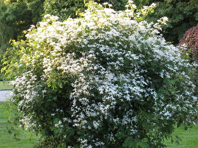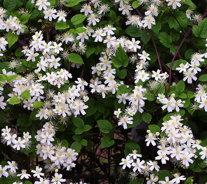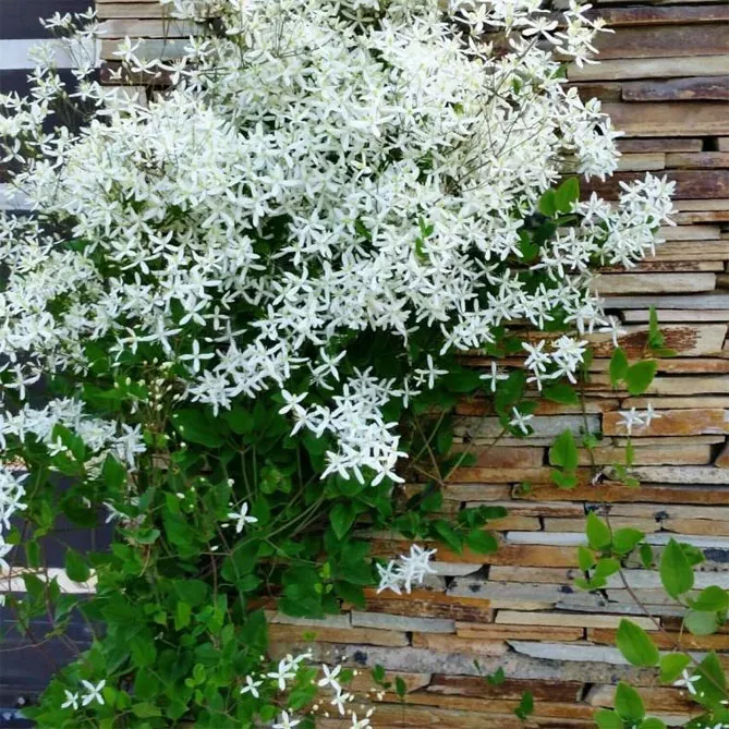Невибагливий у догляді клематис маньчжурський (Clematis mandschurica). Це виключно невимоглива рослина, прекрасно цвіте практично весь сезон. Це ліана, що досягає висоти 2 метри. Відмітні риси виду – дрібні білі квітки, що досягають діаметра максимум 2 см. Своєю формою вони нагадують розрізнені зірочки. Період цвітіння: липень-вересень. Додаткова перевага рослини – прекрасний аромат. Білі квіти цікаво виглядають на фоні зелених листків. Після періоду цвітіння на місці квіток з'являються характерні плоди, що складаються з крихітних волосків, утворюючи невеликі «пончики».