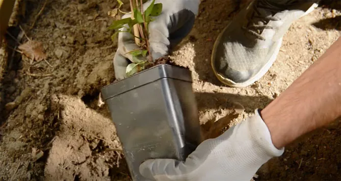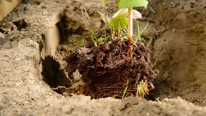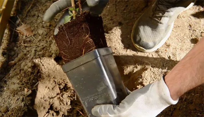 Після розміщення в ямі рослини засипаємо садовою землею, змішаною навпіл з компостом. Саджанці розміщують у ямі на кілька сантиметрів глибше, ніж вони росли в горщику. Присипані пагони випустять коріння, що зміцнить рослину.